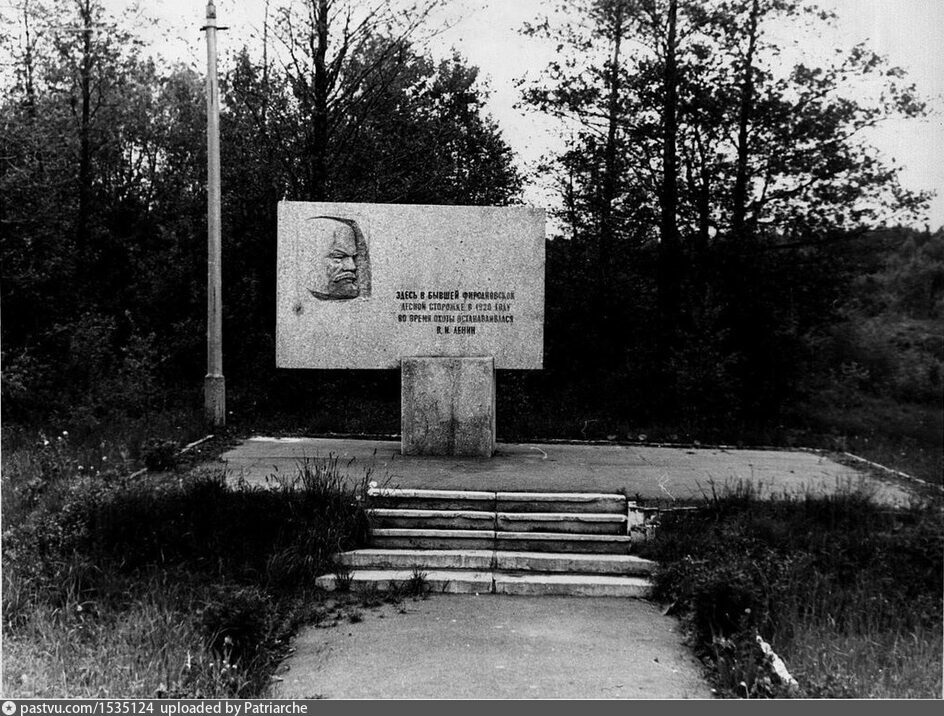 Памятный мемориал на месте Фирсановской сторожки (фото 1965-70 гг.). Источник: https://pastvu.com/p/1535124