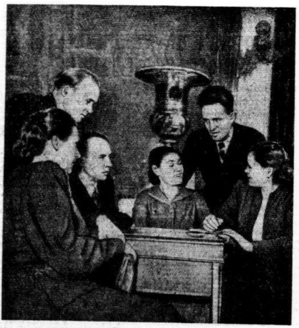 Анатолий Егорович Ульяхин (стоящий слева) среди участников областной конференции профсоюзов (Вечерняя Москва, 1956, № 71, с.1).